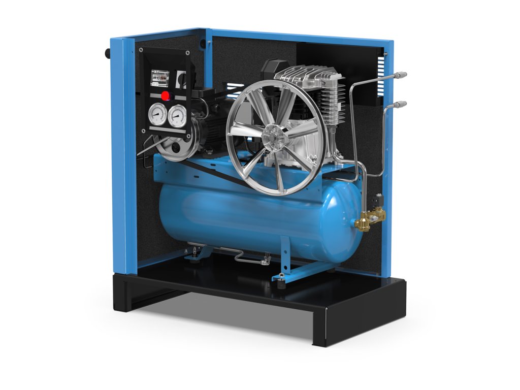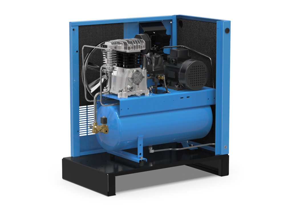 Jednostupňový kompresor z rady Silent LN v olejom mazanom prevedení so spojením elektromotora s nízkootáčkovou kompresorovú jednotkou pomocou klinových remeňov. Perfektné odhlučnenie pomocou kovového krytu s penovými panelmi a so zaistením optimálnej prevádzkovej teploty stroja vhodnými ventilačnými otvormi. Kompresor ďalej disponuje nasledujúcimi benefity a štandardným vybavením: