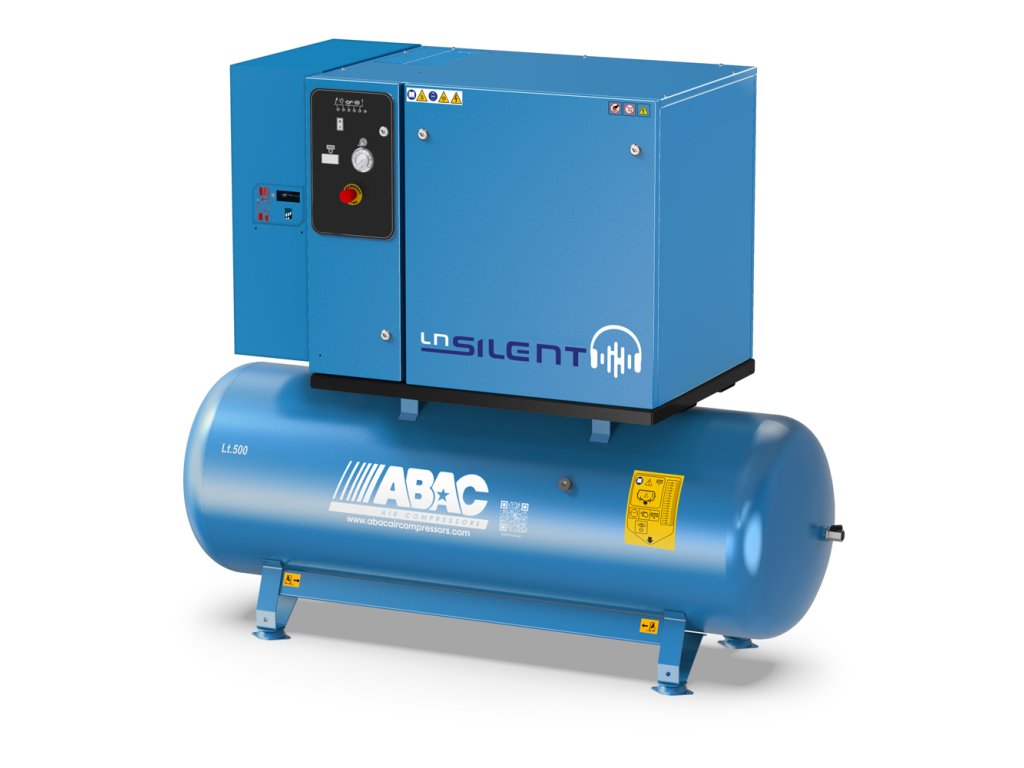 Dvojstupňový kompresor z rady Silent LN v olejom mazanom prevedení so spojením elektromotora s nízkootáčkovou kompresorovú jednotkou pomocou klinových remeňov. Perfektné odhlučnenie pomocou kovového krytu s penovými panelmi a so zaistením optimálnej prevádzkovej teploty stroja pomocou ventilátora a vhodného vedenia chladiaceho vzduchu. Stroj je vybavený ležatým vzdušníkom a kondenzačné sušičkou pre odstránenie vlhkosti zo stlačeného vzduchu. Kompresor ďalej disponuje nasledujúcimi benefity a štandardným vybavením: