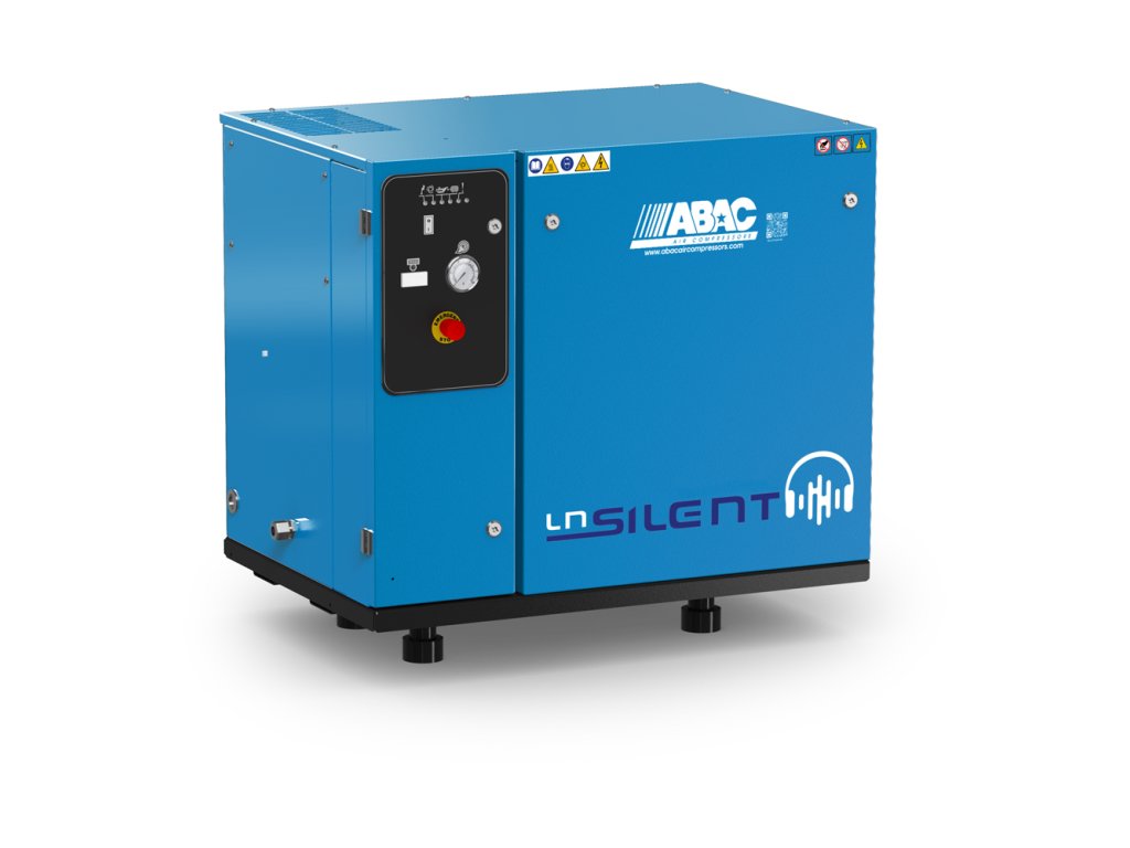 Dvojstupňový kompresor z rady Silent LN v olejom mazanom prevedení so spojením elektromotora s nízkootáčkovou kompresorovú jednotkou pomocou klinových remeňov. Perfektné odhlučnenie pomocou kovového krytu s penovými panelmi a so zaistením optimálnej prevádzkovej teploty stroja pomocou ventilátora a vhodného vedenia chladiaceho vzduchu. Kompresor ďalej disponuje nasledujúcimi benefity a štandardným vybavením:
